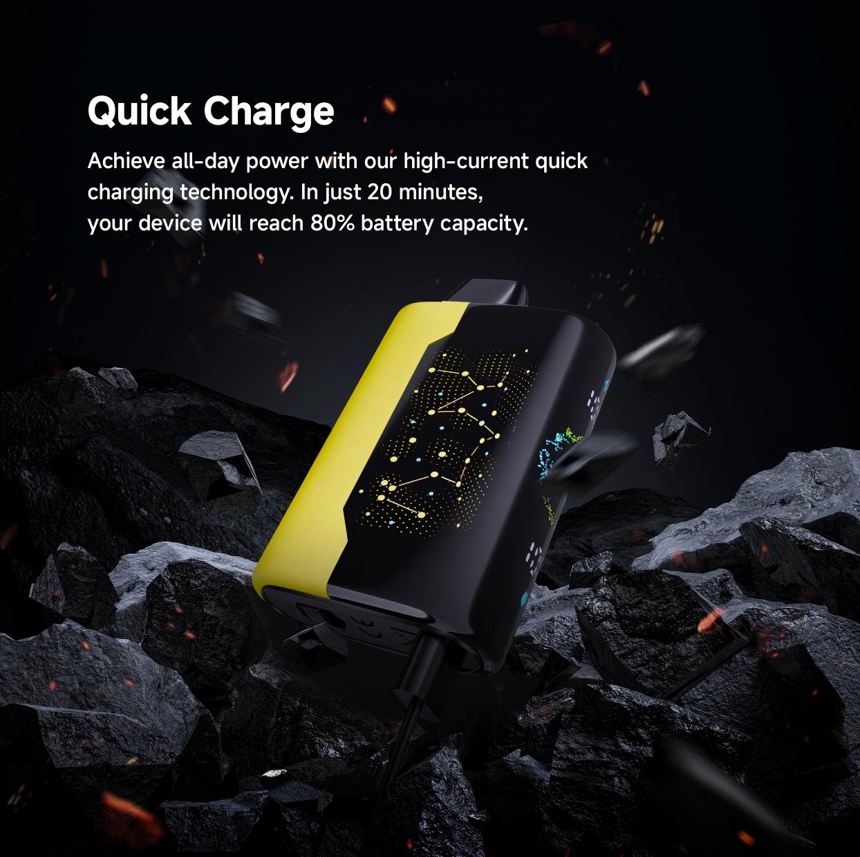 Žádné dlouhé čekání – díky technologii rychlého nabíjení dosáhnete až 80% baterie během 20 minut. Připraveno k celodennímu použití bez přestávky!